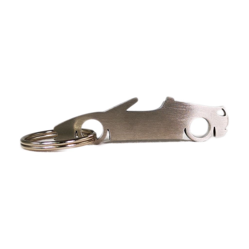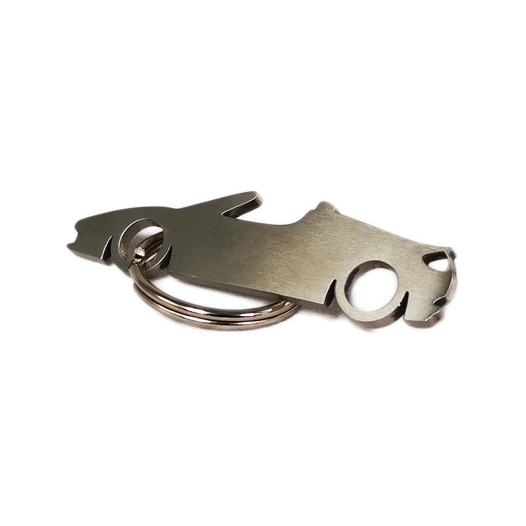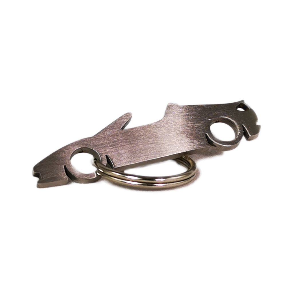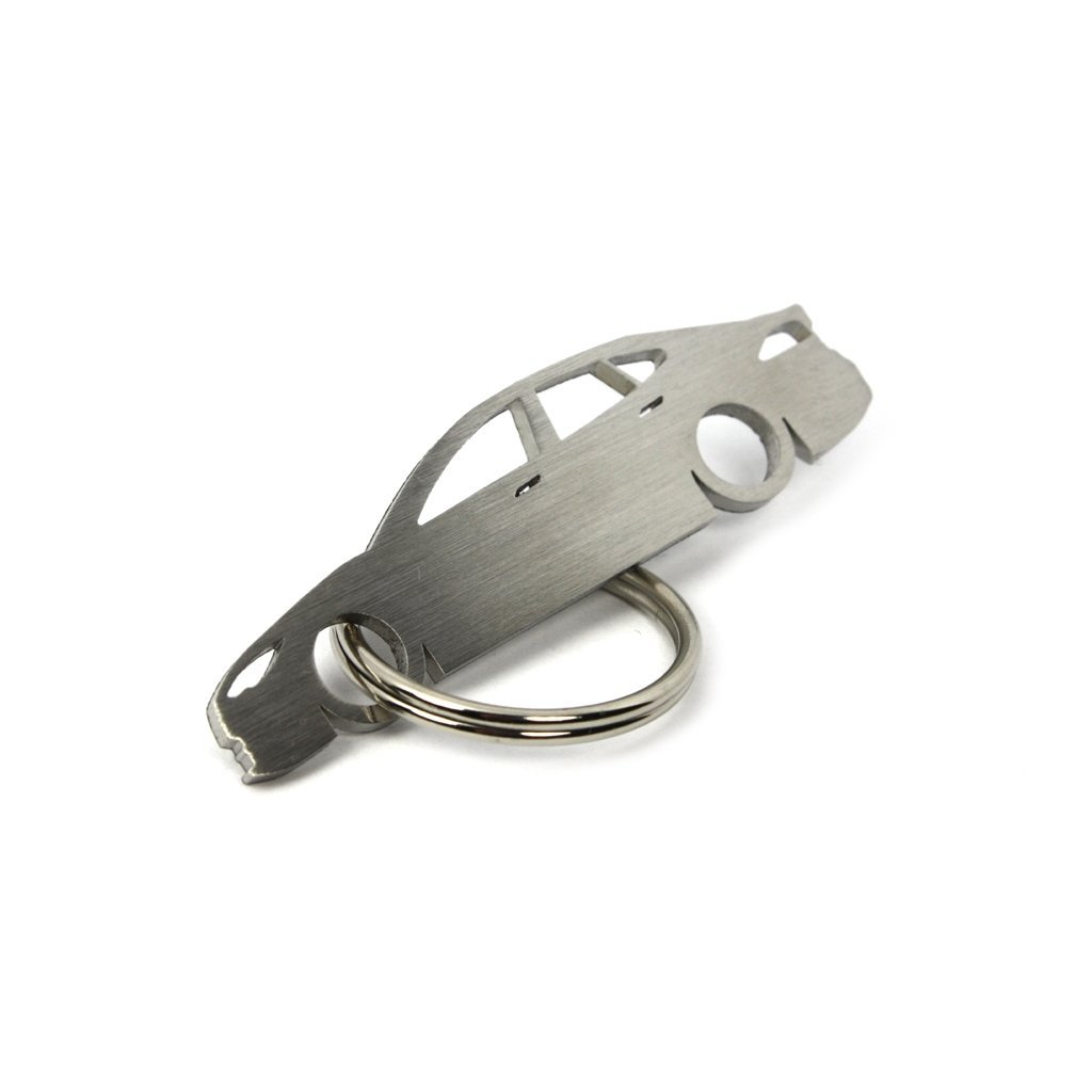 Coole Schlüsselanhänger aus Edelstahl in Tesla Silhouetten Form.