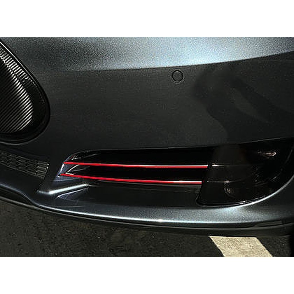 Möchten Sie einen sportlichen Farbstreifen zu Ihren Einlasslüftern montieren? Die Aufkleber sind zugeschnitten (4 lange Stücke), welche einfach aufgeklebt werden. Auf den Fotos sind rot reflektierende Aufkleber, die zu den Tesla OEM Bremsabdeckungen passen. Sie reflektieren das Licht wie ein Stoppschild. Einfach zu installieren, auch andere Farben lieferbar.