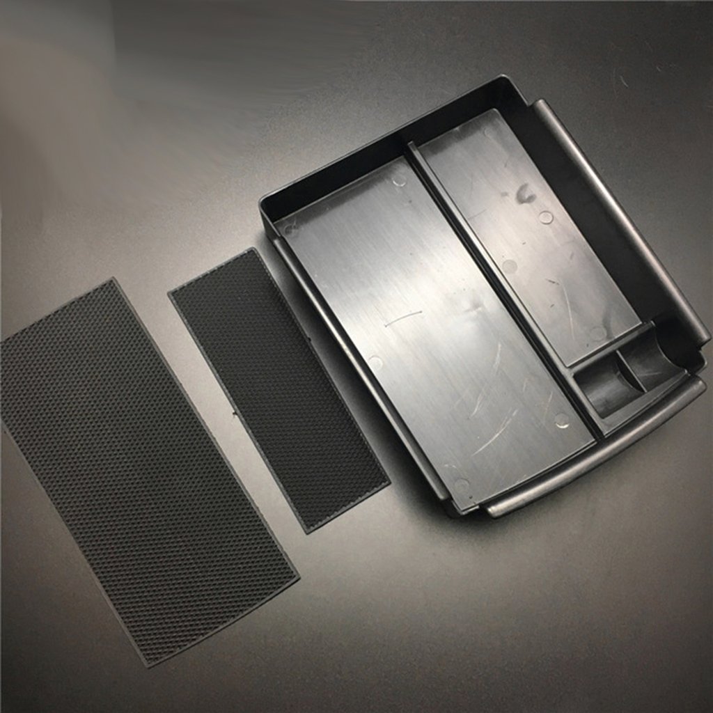 Hier die Lösung: ein solider Einsatz, 2mm Wandstärke und speziell dafür entworfen, damit er einwandfrei in die Mittelkonsole Ihres Tesla passt. Der Einsatz ist aus hochwertigem hitzebeständigen industriellen ABS (schwarz) hergestellt und eine Gummimatte liegt bei, damit die Gegenstände nicht hin und herrutschen.