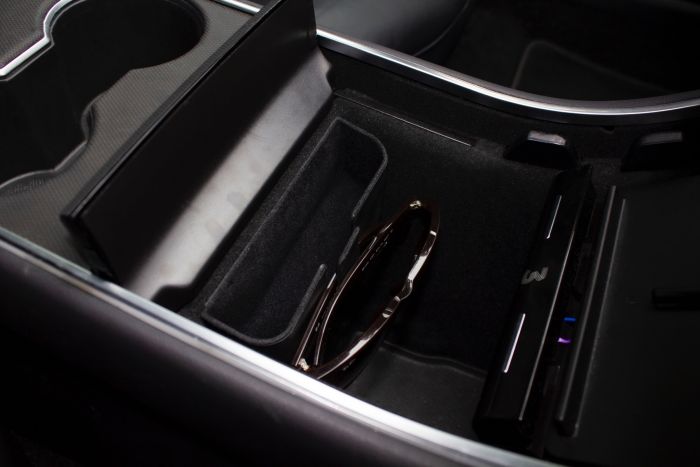Dieser versteckte Brillenhalter passt gut in die Mittelkonsole. Dank des bereits installierten 3M-Bandes ist es sehr einfach anzuwenden. Bei Bedarf kann es auch leicht wieder entfernt werden.