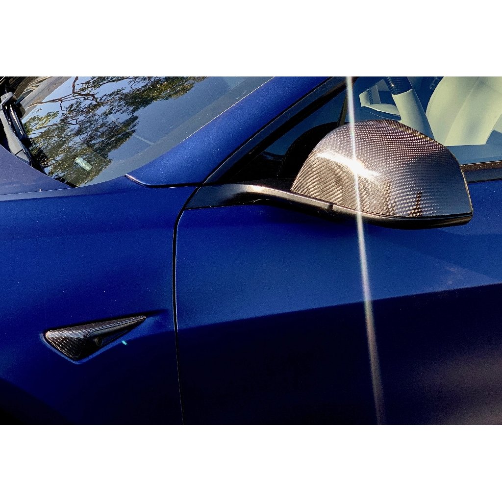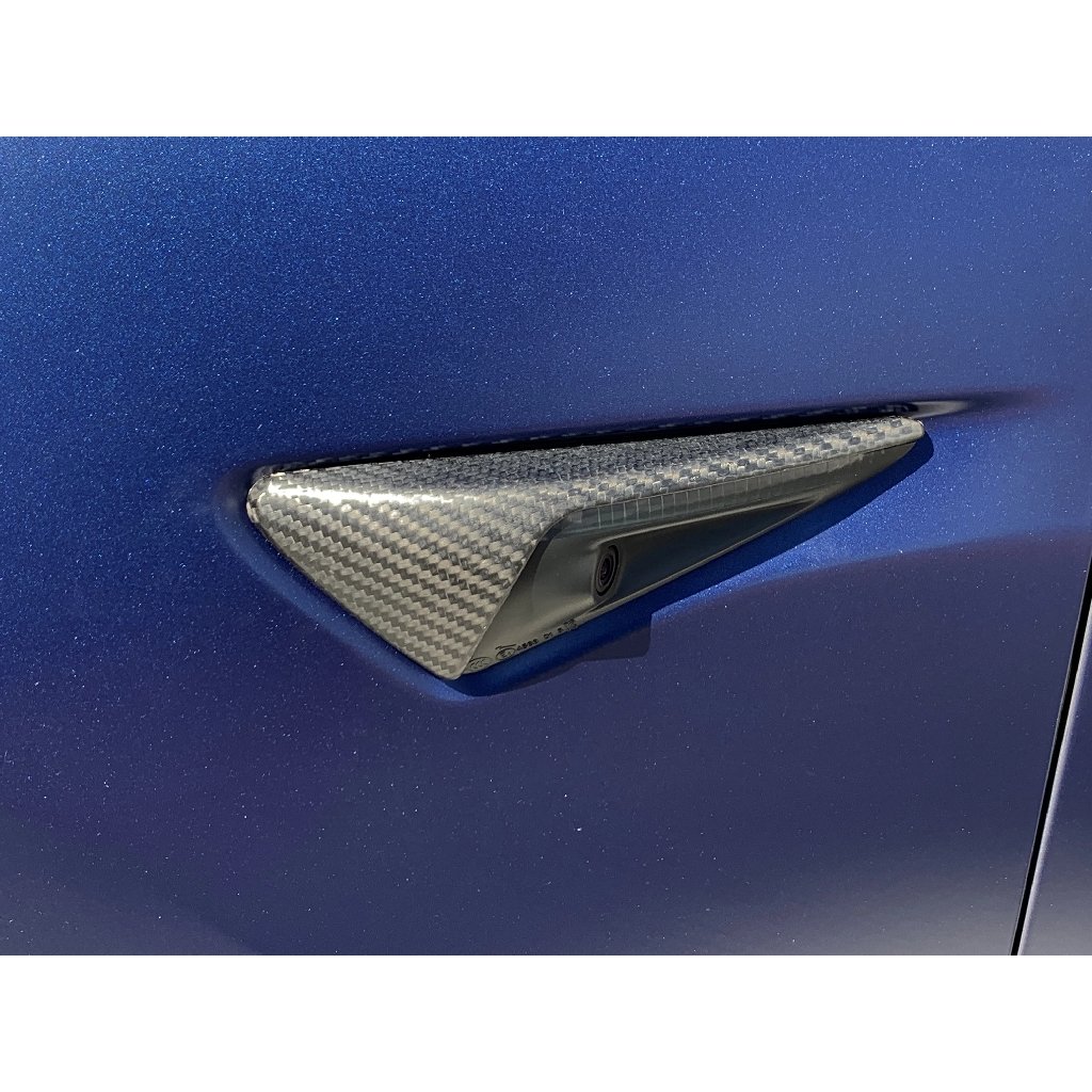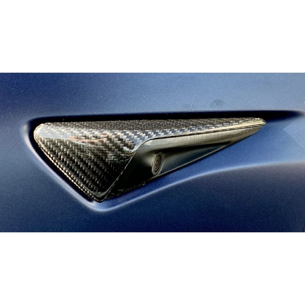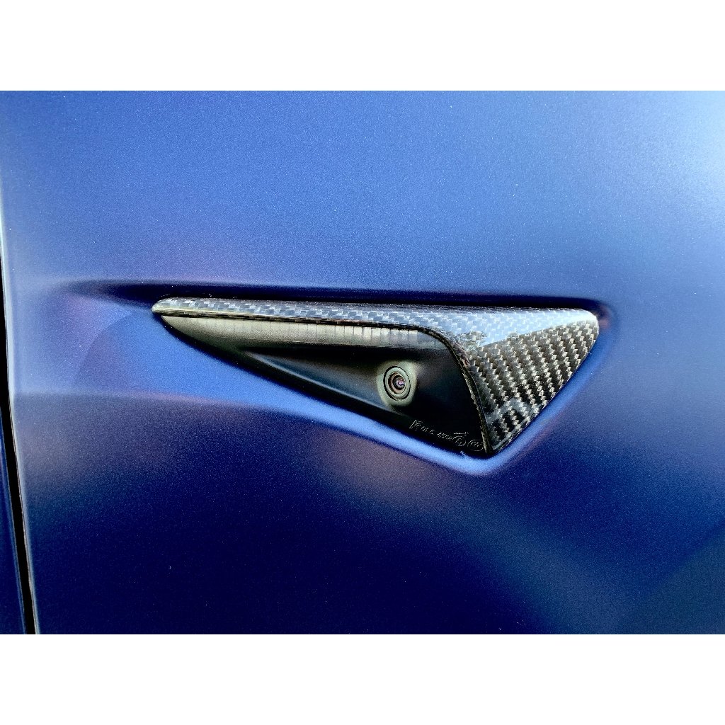Echte Carbon Blinkerabdeckungen für Autopilot 2 und höher. Diese Modelle wurden von Tesla nach dem 18. Oktober 2016 hergestellt. Bitte überprüfen Sie, ob in Ihrem Blinker eine Autopilot 2-Seitenansichtskamera eingebaut ist.