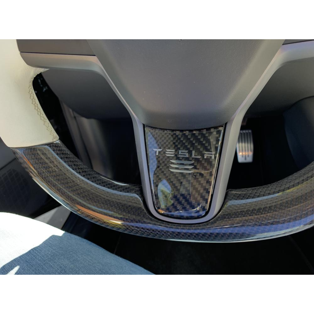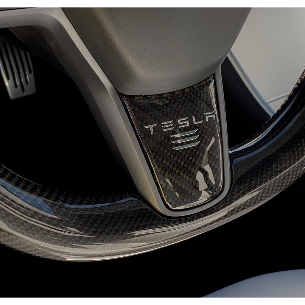 Dieses schöne Carbon-Insert passt für alle Lenkräder von Model 3 & Y. Es ist ein echtes Kohlefaser-Teil, das 0,10 mm dünn ist. Wir legen eine Harzschicht darüber, um die Kohlefaser zu schützen, und dann formen wir die TESLA-Buchstaben unter dem Harz. Sie sind hell silbern passend zu Ihrem Airbaggehäuse. Dies ist kein Aufkleber, sondern ein echtes Stück Kohlefaser.