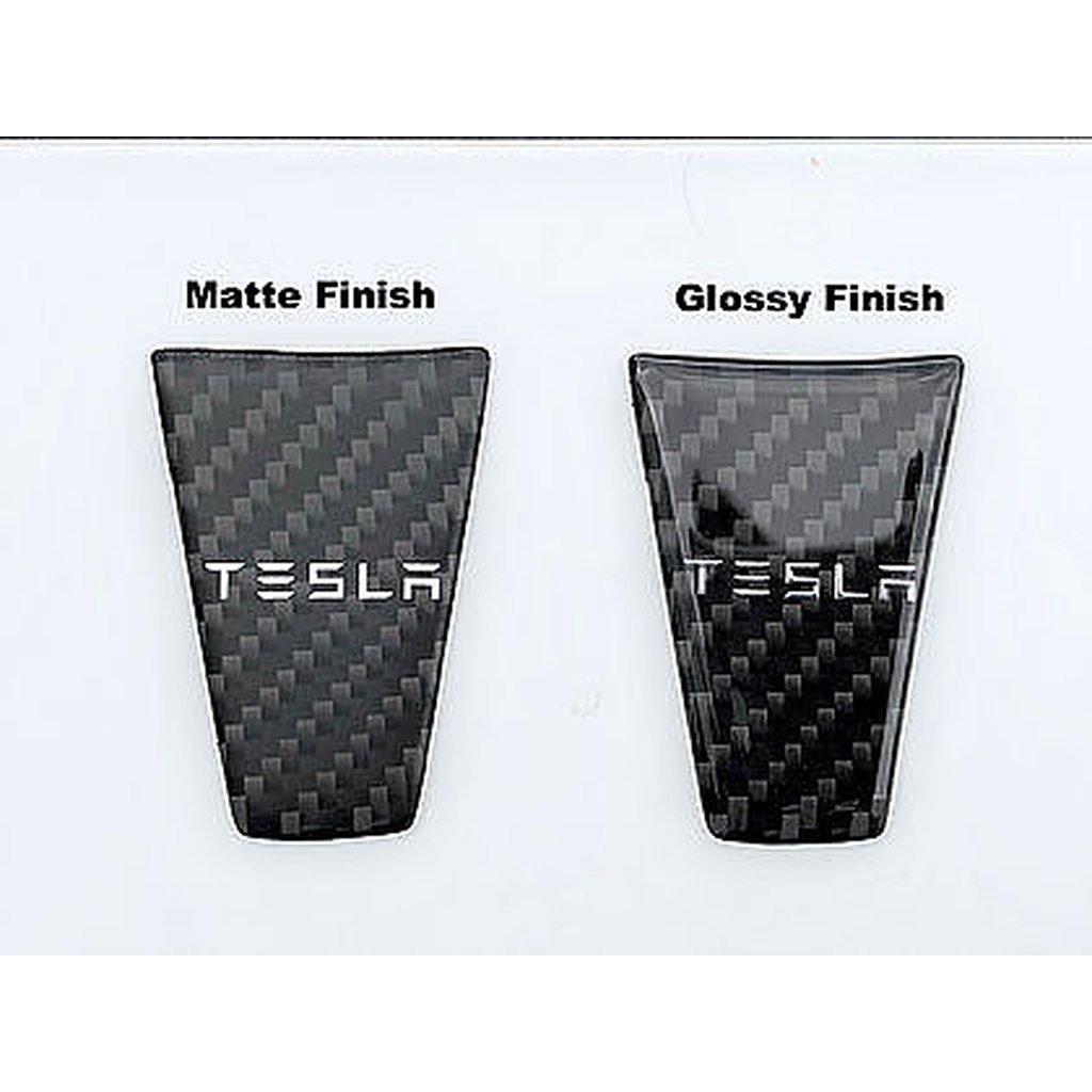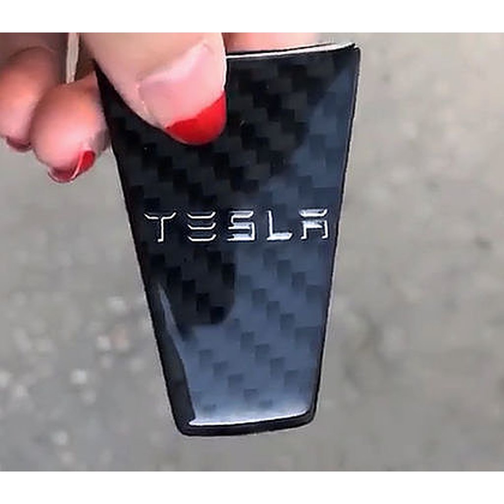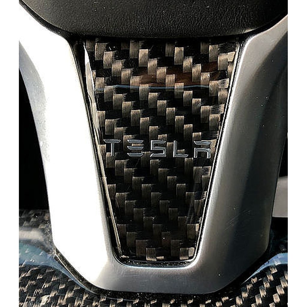 Es ist ein echtes Kohlefaser-Teil, das 0,10 mm dünn ist. Wir legen eine Harzschicht darüber, um die Kohlefaser zu schützen, und dann formen wir die TESLA-Buchstaben unter dem Harz. Sie sind hell silbern passend zu Ihrem Airbaggehäuse.