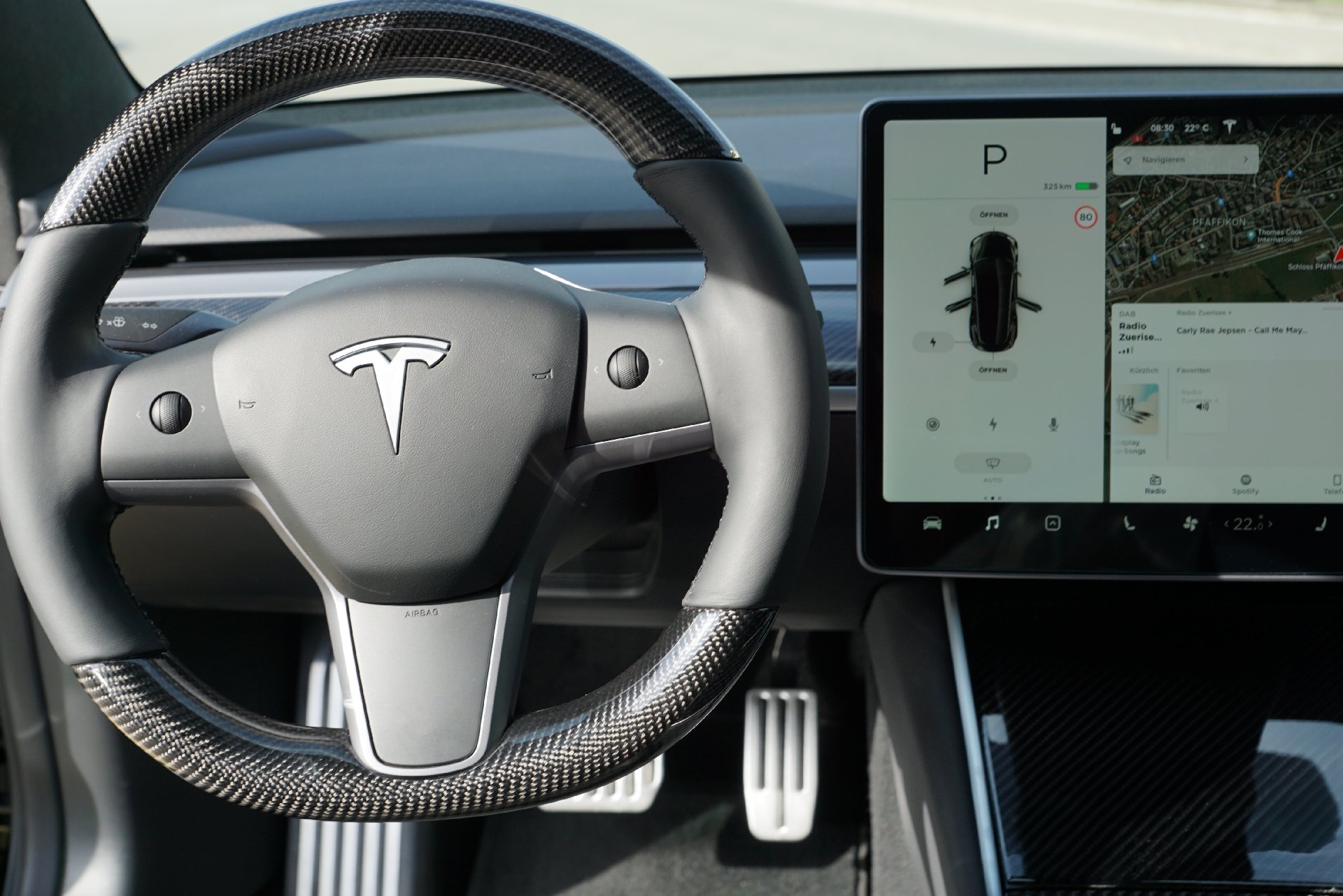 Im Innenraum wurde sehr viele weitere Details verbaut, wir zum Beispiel Wireless Charger Smartphone, Echt-Carbon-Armaturenbrett, Lenkrad und Mittelkonsole.
