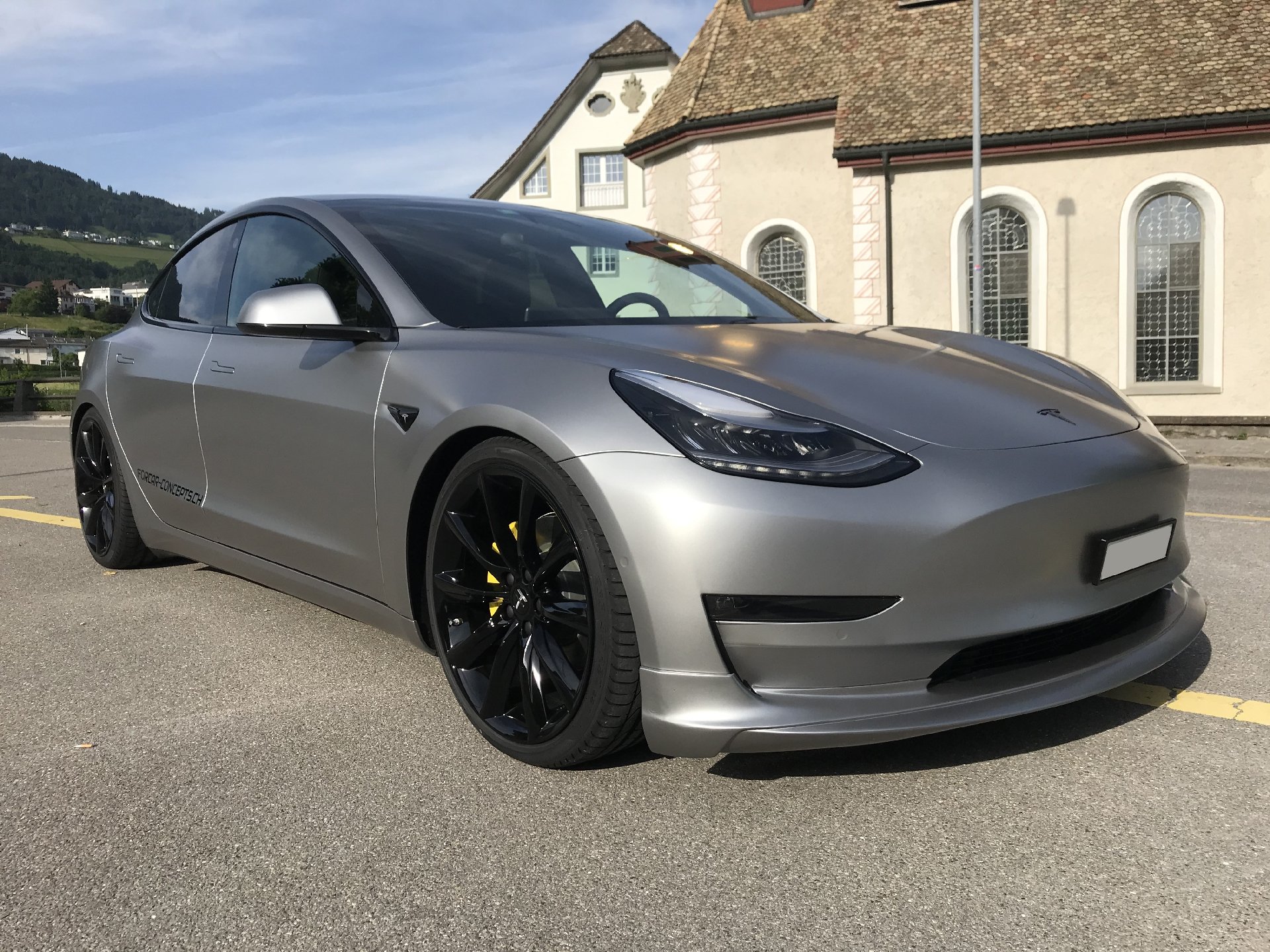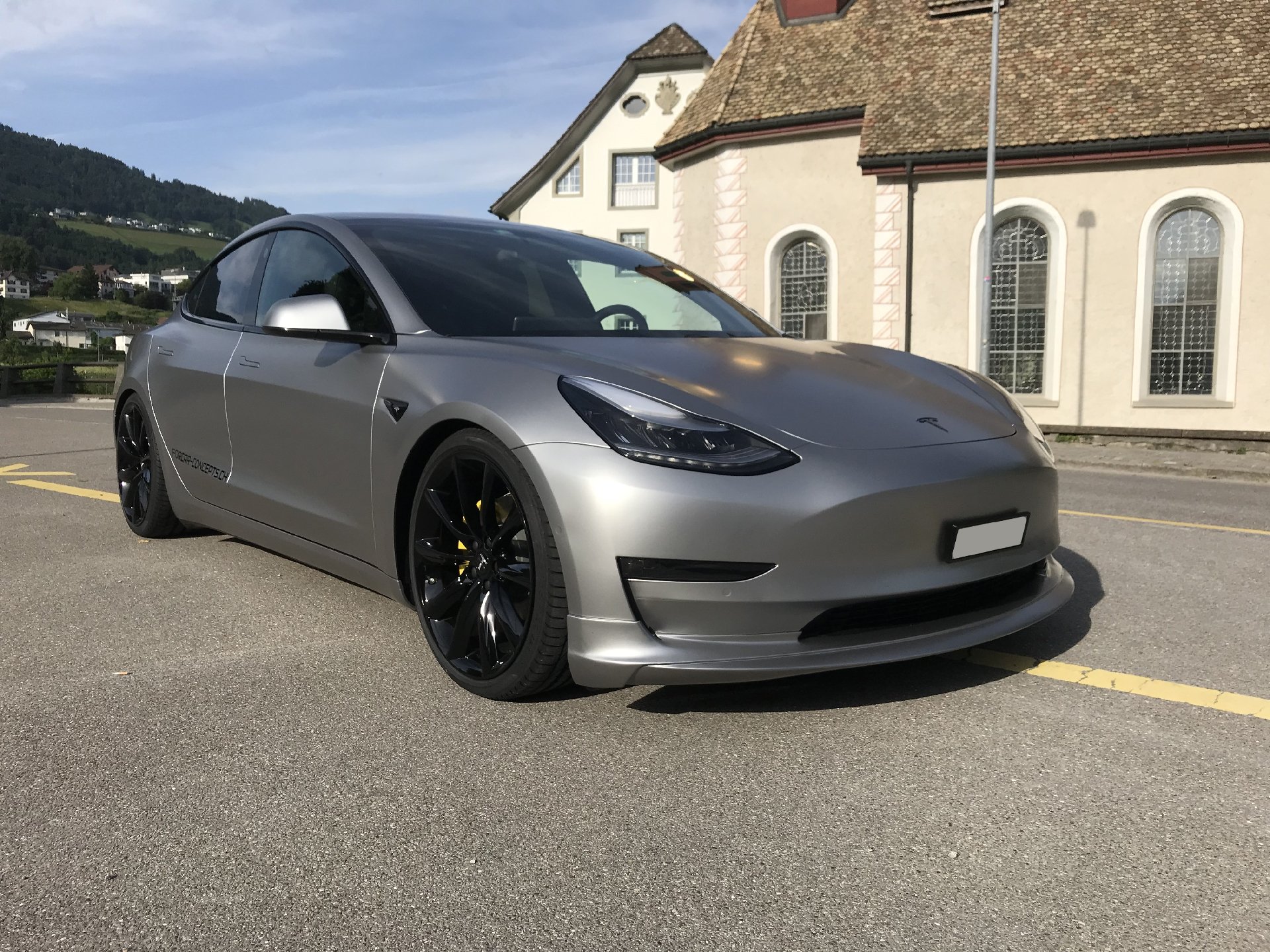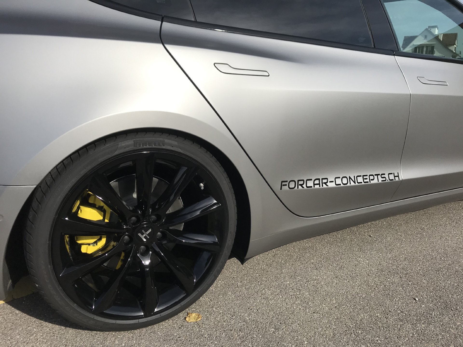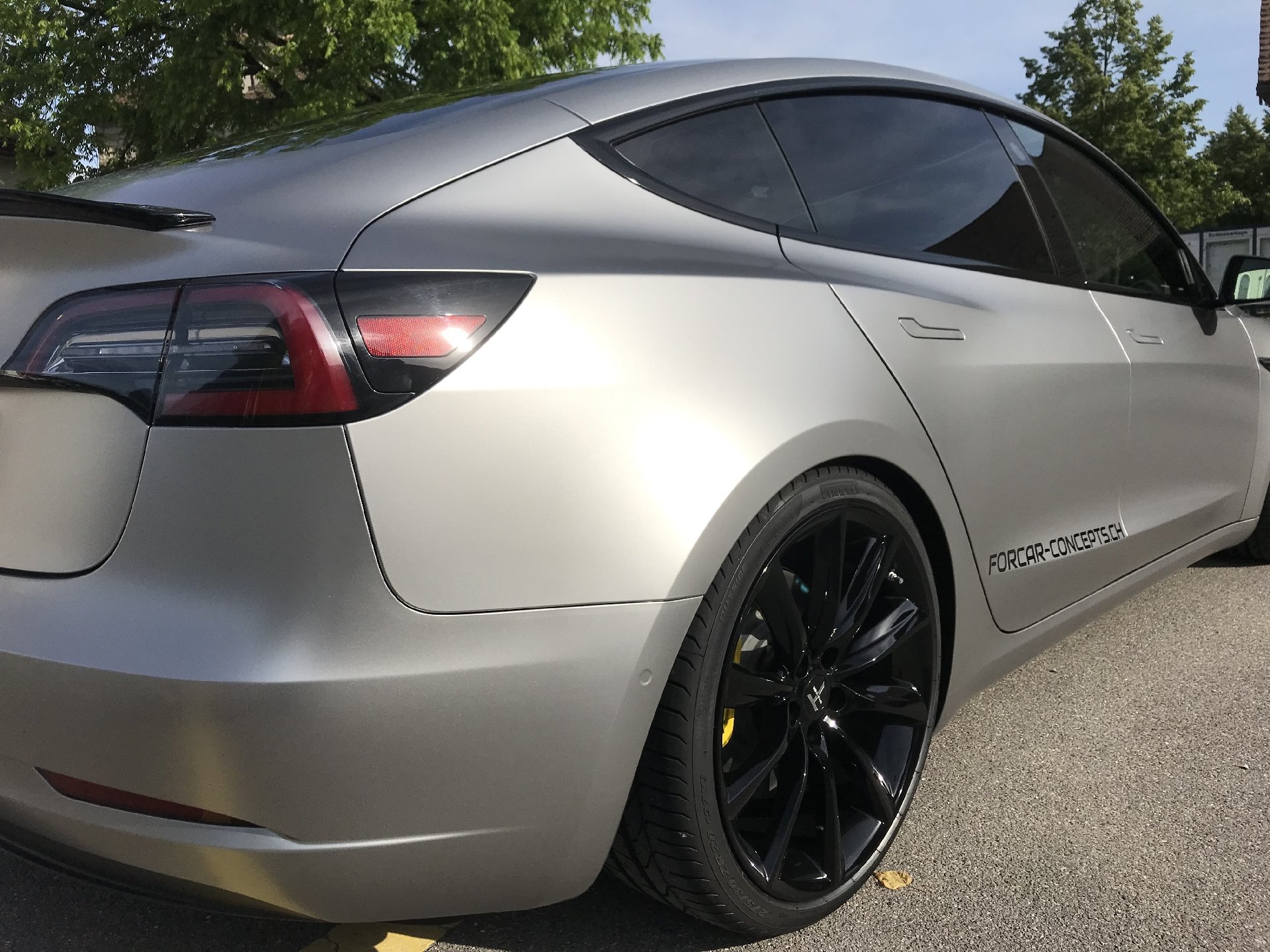 Der Concept-2 wurde für einen guten langjährigen Kunden konzipiert. Der Ansatz war, ein “outstanding Model 3“ zu machen, was unserer Meinung nach auch gelungen ist. Das Fahrzeug wurde komplett in einem speziellen silber-matten Farbton foliert. TSportline TST Felgen in 20 Zoll, kombiniert mit den Tieferlegungsfedern und der Frontspoiler von Unplugged Performance und der Heckspoiler komplettieren den Look des „Stealth Bombers“.