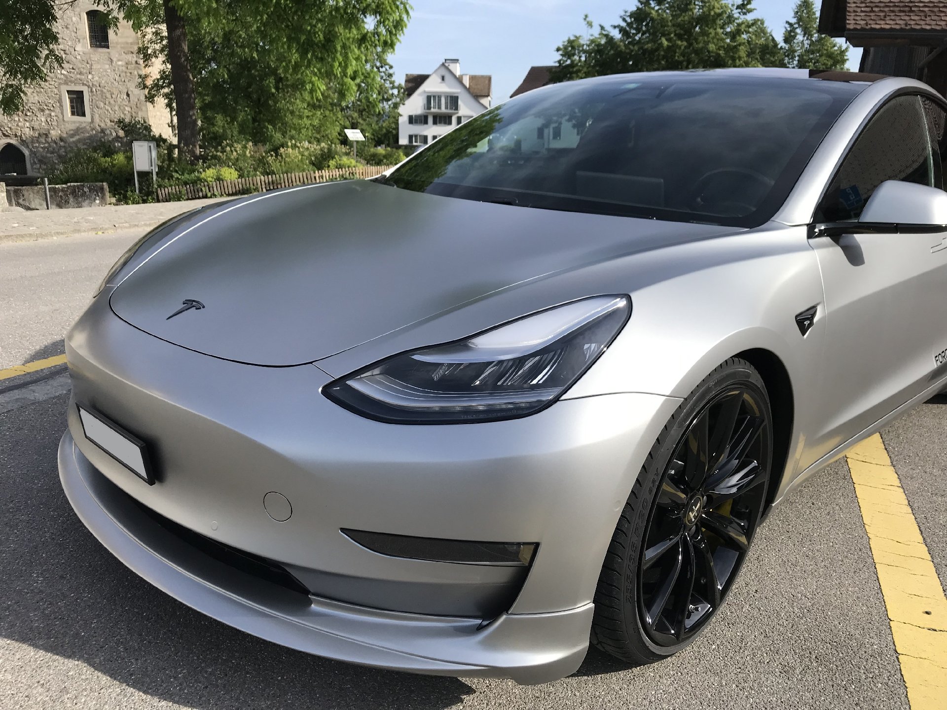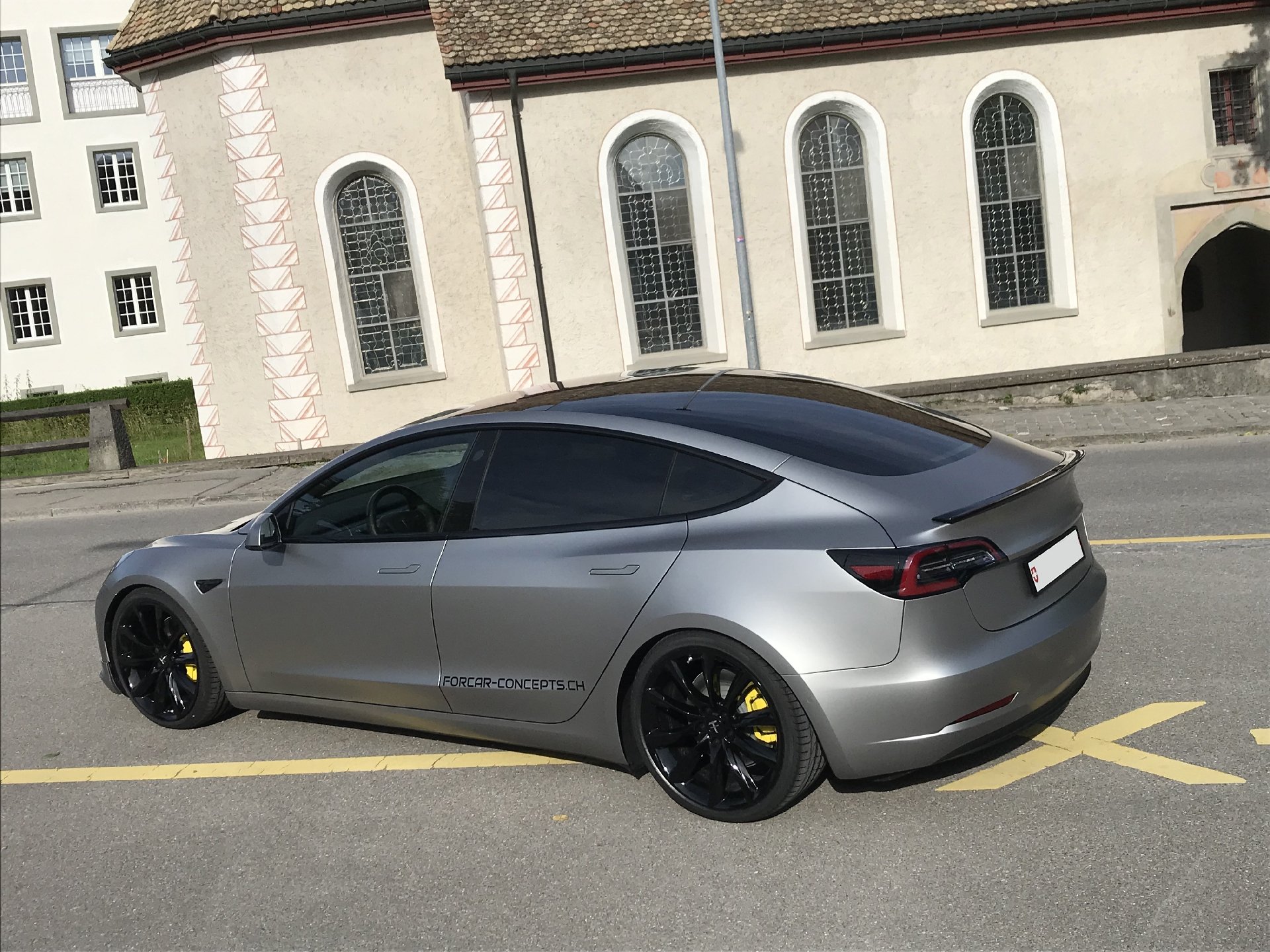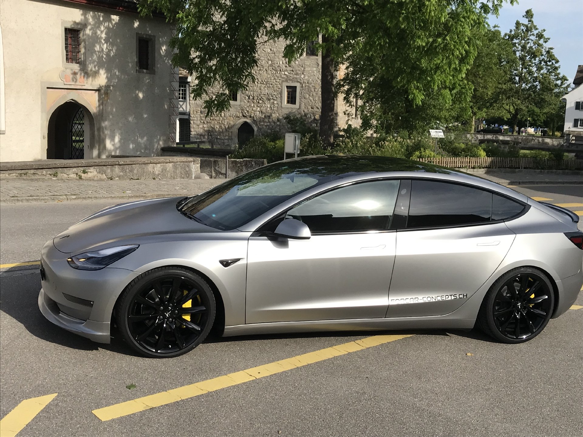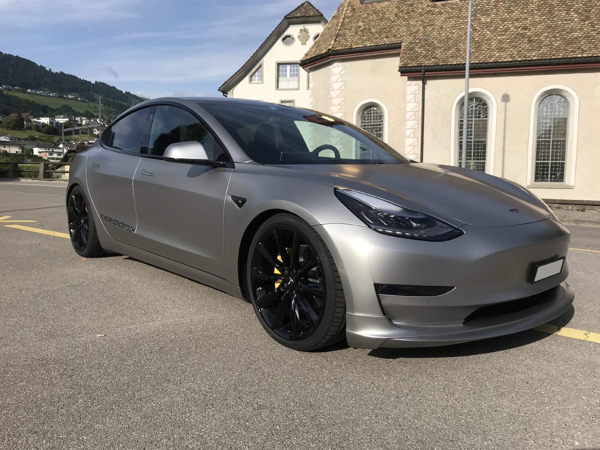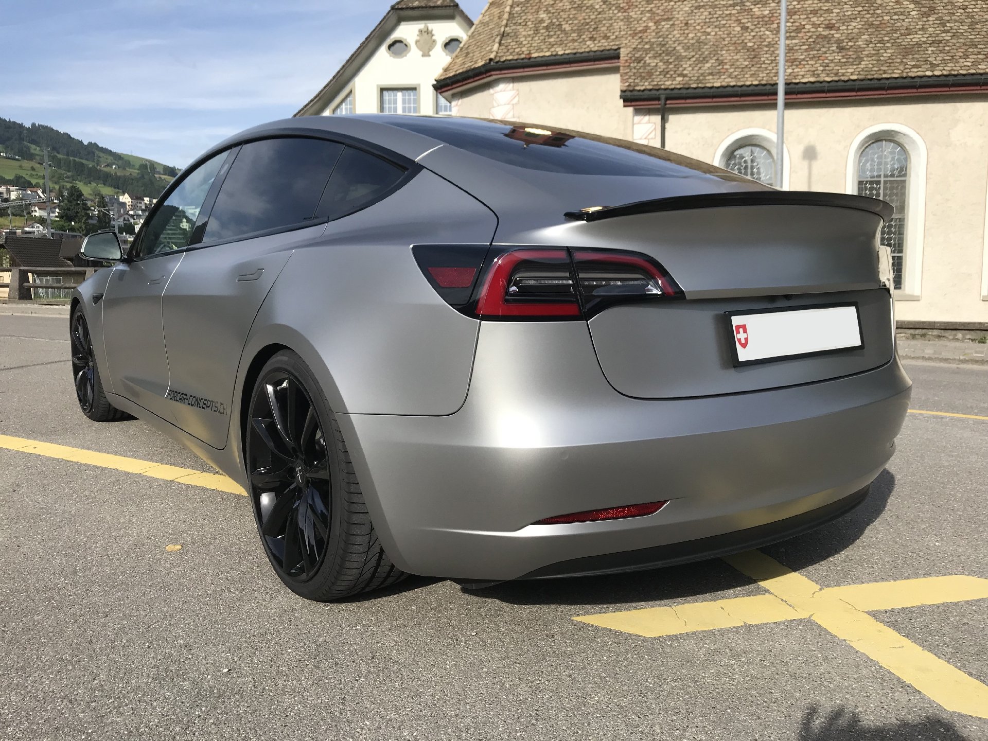 Der Concept-2 wurde für einen guten langjährigen Kunden konzipiert. Der Ansatz war, ein “outstanding Model 3“ zu machen, was unserer Meinung nach auch gelungen ist. Das Fahrzeug wurde komplett in einem speziellen silber-matten Farbton foliert. TSportline TST Felgen in 20 Zoll, kombiniert mit den Tieferlegungsfedern und der Frontspoiler von Unplugged Performance und der Heckspoiler komplettieren den Look des „Stealth Bombers“.