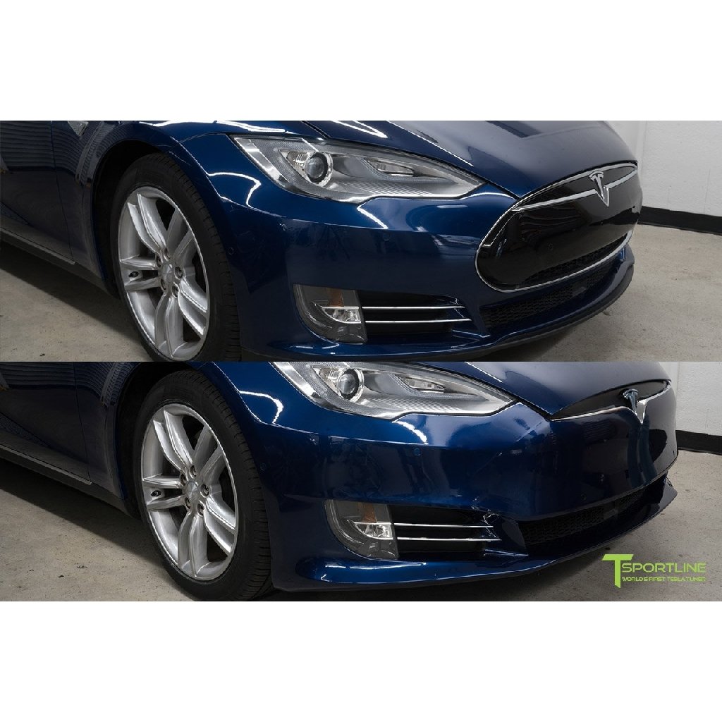 Die Frontstoßstange Facelift Refresh des Modells 2012-2016 ersetzt die Frontpartie Ihres Fahrzeugs durch ein überarbeitetes Design der Frontstoßstange, das dem aktuellen Mai 2016+ Model S ähnelt. Mit anderen Worten, wenn Sie ein Model S haben Hergestellt mit einem älter aussehenden Stoßfänger, lässt unser Stoßfänger das vordere Ende Ihres Modells S ähnlich aussehen wie das neue Model S, das ab Mai 2016 produziert wird. Unser Model S Frontstoßstange Facelift Refreshkit werden mit all Ihrer aktuellen Model S Stoßstange Hardware kompatibel sein. Das bedeutet, dass Sie das Original-Tesla-Emblem, Parksensoren, Nebelscheinwerfer und angrenzende Chromblenden, unteren Mittelgrill und Autopilotsensor übertragen. Unser Tesla Model S Frontstoßstange Facelift Refresh entspricht Fabrikqualität und -standards. Es ist so stark und zuverlässig wie die Erstausrüstung. Jeder vordere Stoßfängerersatz wird aus OEM-Polyurethan hergestellt und erfordert eine professionelle Vorbereitung, Lackierung und Installation durch einen qualifizierten Karosseriebau. Zu jedem Frontstoßfänger Facelift Refresh werden wir einen neuen Chromakzent-Zierstreifen hinzufügen. Hergestellt in einer CAPA-zertifizierten Anlage. Haftungsausschluss: Von der Einführung des Model S im Jahr 2012 bis zur Aktualisierung der Facelift-Version Mitte 2016 wies das Model S große Unterschiede in den Befestigungspunkten auf. Mit anderen Worten, kein Model S wurde in Bezug auf Befestigungsplatten gleich zusammengebaut. Nach einem Interview mit Tesla-Servicetechnikern, autorisierten Tesla-Karosseriewerkstätten und der Übernahme von mehr als 100 Modellen des Modells S können wir mit Sicherheit sagen, dass sich unsere vordere Stoßstange innerhalb der Tesla-Spalttoleranz von ca. 10 mm befindet.