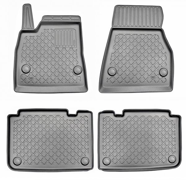 - 4-teilig (2 x vorn, 2 x hinten) inkl. Schutz des Mitteltunnels (hinten)