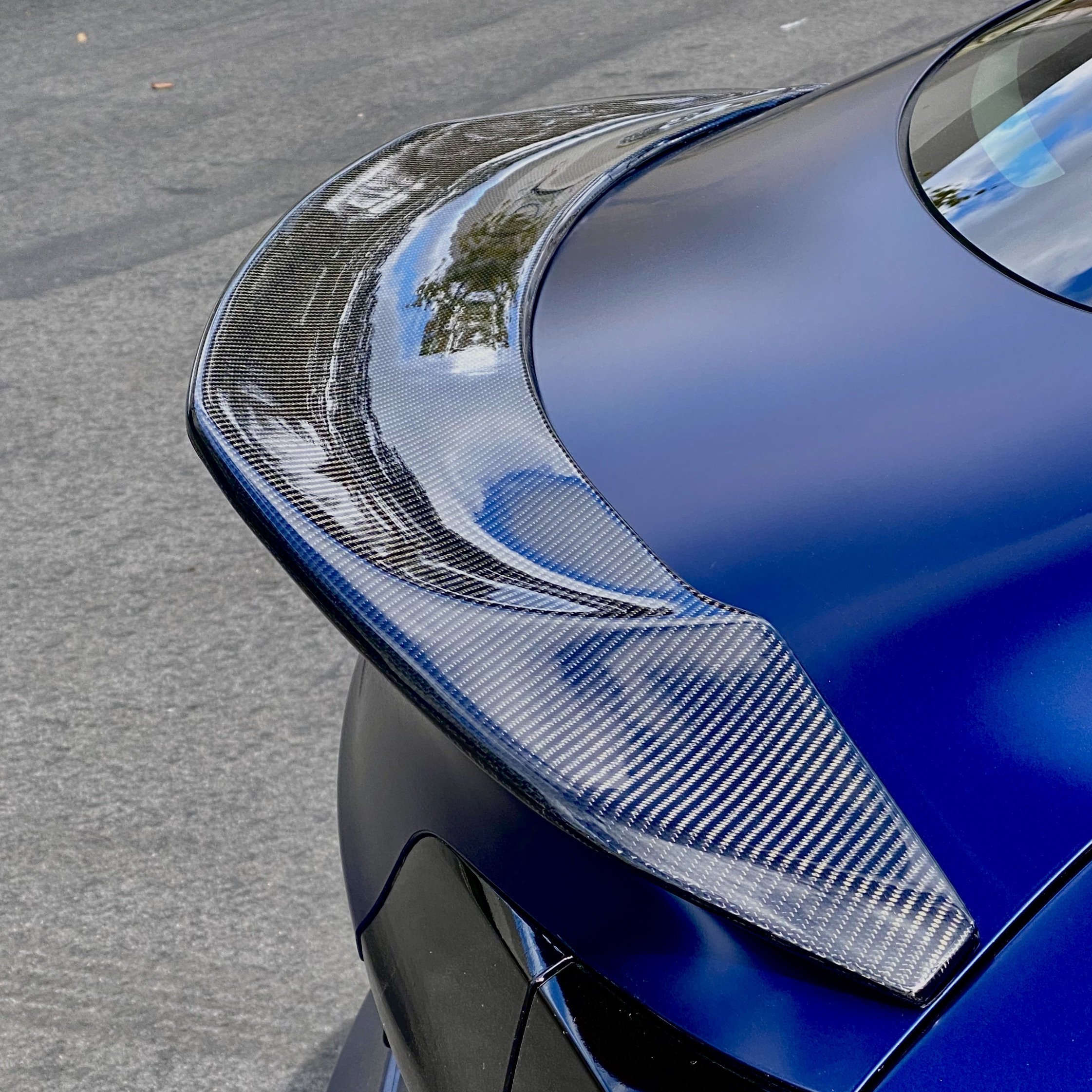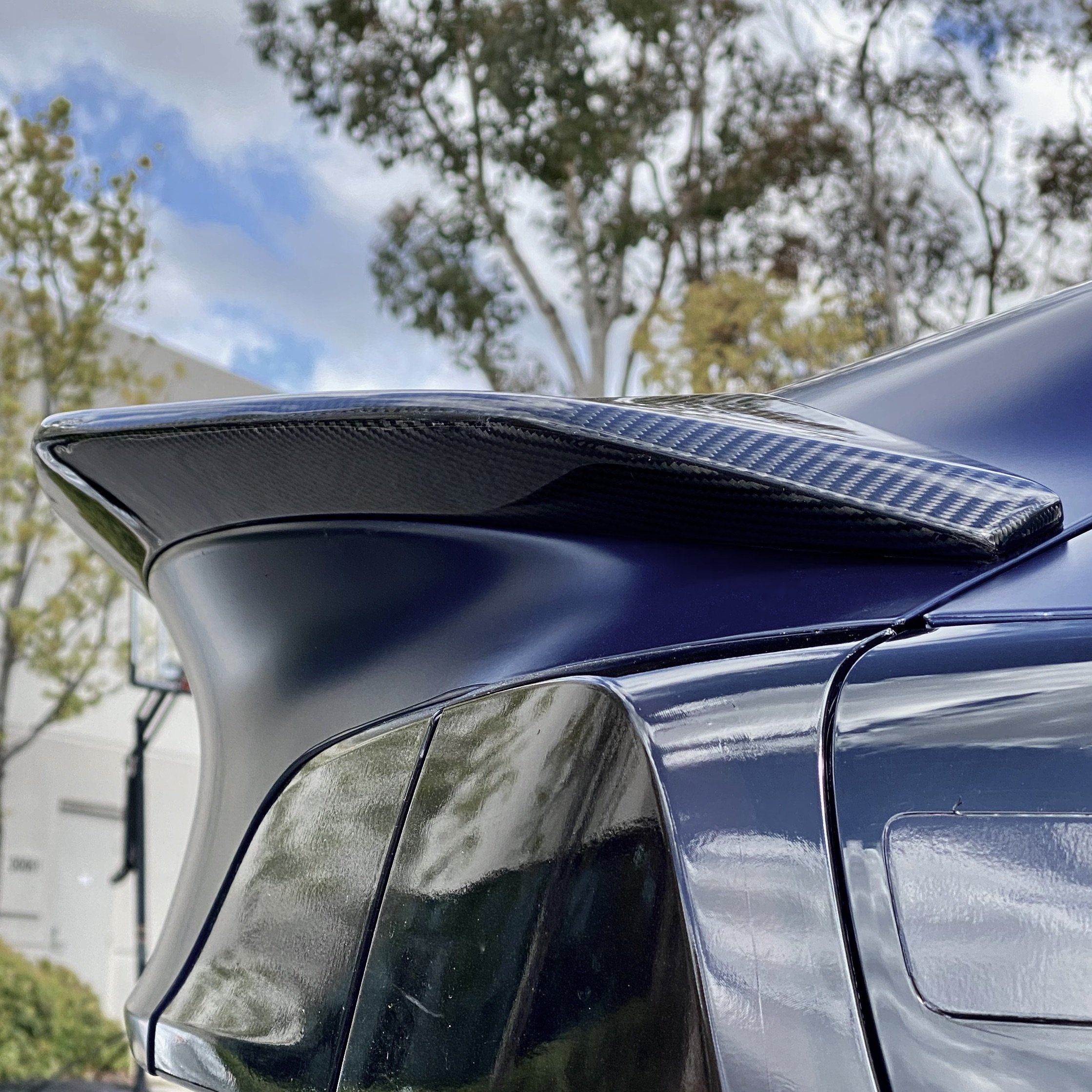 Unser neuester Heckspoiler V-Style Model 3 besteht aus echter geformter Kohlefaser. Dies ist keine bedruckte oder beschichtete Carbonlook Version, sondern eine echte geformte Kohlefaser. Dieser Heckspoiler passt perfekt und deckt die gesamte Breite der Heckklappe ab. Dies ist der ultimative Kohlefaser-Spoiler für den Tesla-Besitzer, der Stil, zusätzlichen Abtrieb, einen aggressiven Look wünscht. Diese geformte Kohlefaserversion ist in mattem oder glänzendem Kohlefaser erhältlich.