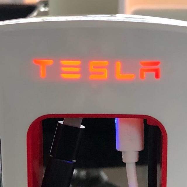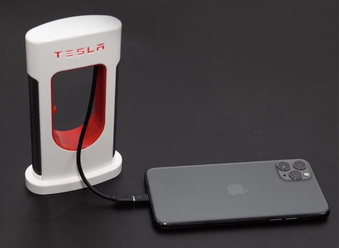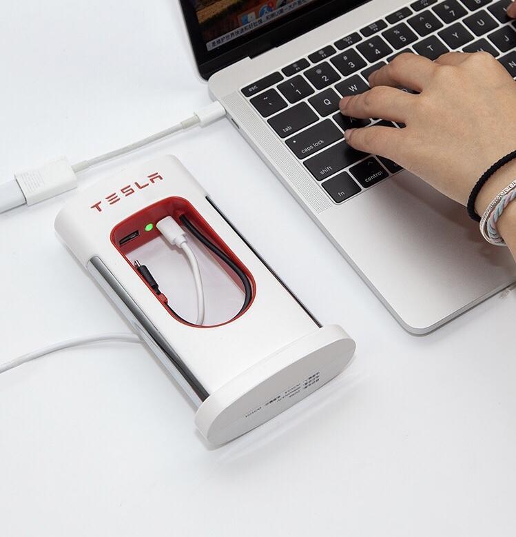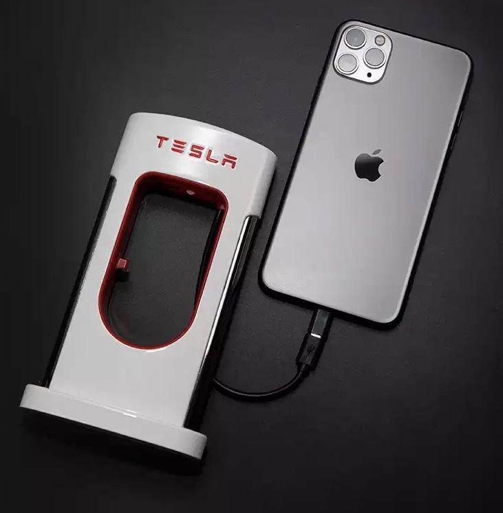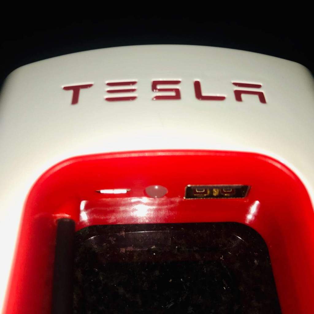 • Ladestation für Ihr Smartphone, die wie ein Original Tesla Supercharger aussieht