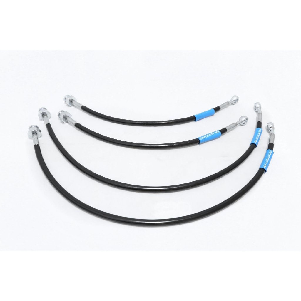 Ab Werk werden in fast allen Serienfahrzeugen Bremsleitungen aus Gummi verwendet. Aus der Sicht der Automobilhersteller ist Gummi eine großartige Option, da es dauerhaft, widerstandsfähig, langlebig und vor allem kostengünstig ist. Es gibt jedoch einige Kompromisse, die mit Bremsleitungen aus Gummi einhergehen, einschließlich der Möglichkeit, dass sich die Schläuche unter starkem Bremsen ausdehnen und zusammenziehen können. Diese Ausführung führt zu einem schwammigen Bremspedalgefühl, was tatsächlich ein Verlust der Bremsfähigkeit ist. Um die werkseitigen Bremsfähigkeiten des Modells 3 weiter zu verbessern, haben wir unser Unplugged Performance Edelstahl-Sportbremsleitungsset entwickelt. Für diejenigen, die eine höhere Leistung und ein besseres Bremsgefühl von ihrem Model 3 erwarten, sind diese Bremsleitungen ein Muss! Durch das Upgrade auf das Edelstahl-Sportbremsleitungsset werden Sie ein viel festeres und reaktionsschnelleres Bremsgefühl feststellen. Das reaktionsschnellere und genauere Gefühl ermöglicht feinfühligere Bremseinstellungen. SPEZIFIKATIONEN: – Bessere Bremsreaktion – Festeres Pedalgefühl – Längere Lebensdauer der Bremsleitung im Vergleich zu werkseitigen Gummileitungen – Einfache Installation – Schwarz beschichteter, Edelstahl-geflochtener, Teflon-gefütterter Bremsschlauch – Hochwertige, in den USA hergestellte Beschläge Kompatibel mit den Modellen 3 RWD + Dual Motor + Performance