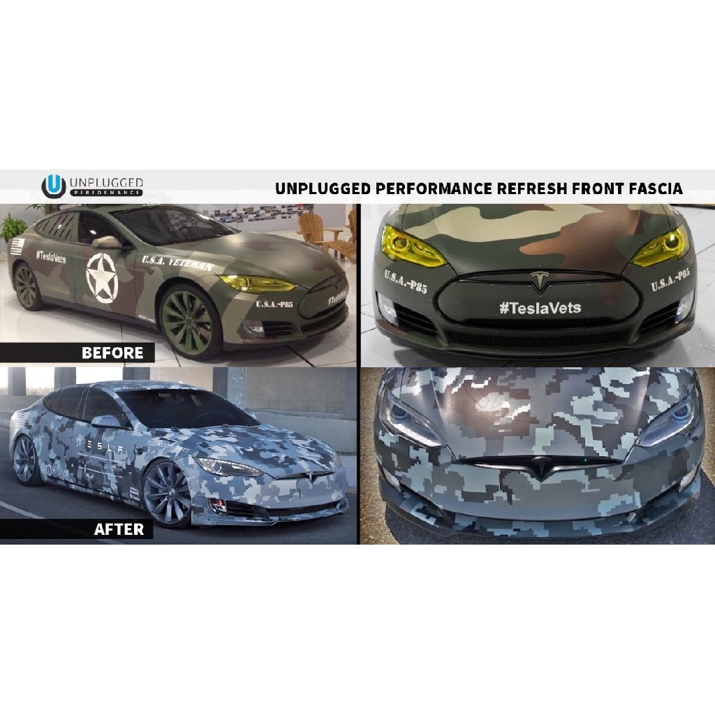 Die Refresh Frontstosstange bietet den Besitzern der früheren Generation von Model S die Möglichkeit, dieses neue Fahrzeuggefühl erneut zu erleben. Der neue Look folgt Teslas Model S Facelift, mit einem aerodynamischen Design ohne Naseneinsatz und einem integrierten Frontspoiler. Dieser markante Frontspoiler verstärkt die Leistungsidentität des Fahrzeugs und zeichnet es als Premium-Version aus, die dem Ethos aller Unplugged-Produkte entspricht.